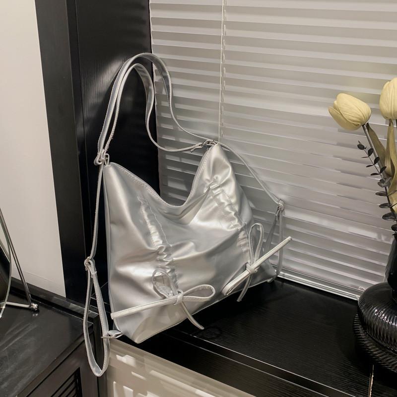 Trendy Bowknot Tote Bag In Beige Silver Pink And Black 2024 Fashionable Design