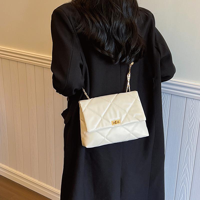 Chic Pu Leather Quilted Chain Shoulder Bag Fashionable Vintage Style For Women