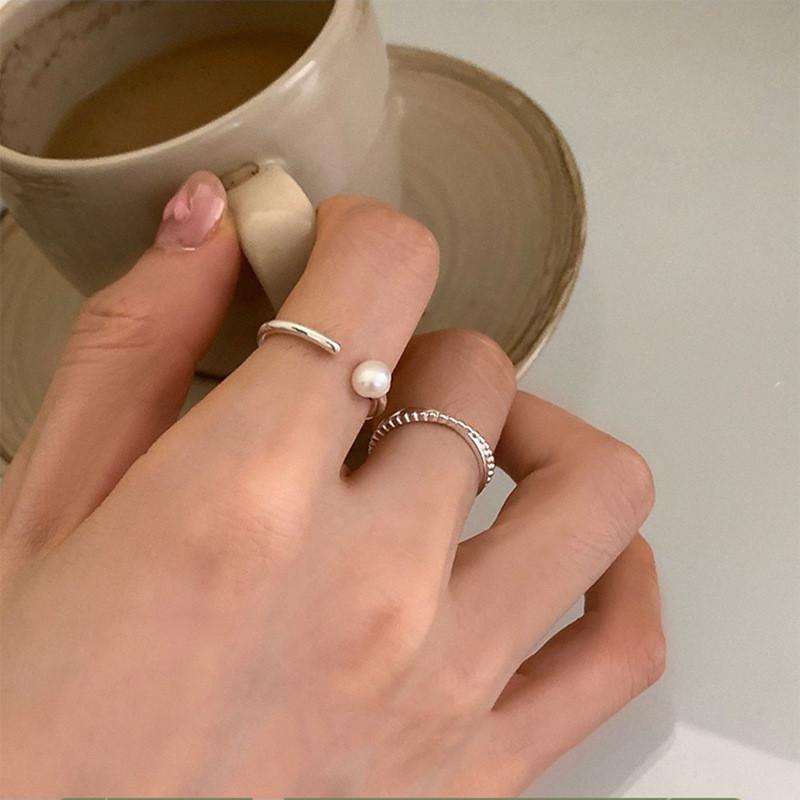 Trendy Geometric Pearl Adjustable Ring For Women Chic Minimalist Fashion Jewelry Ideal For Everyday Wear