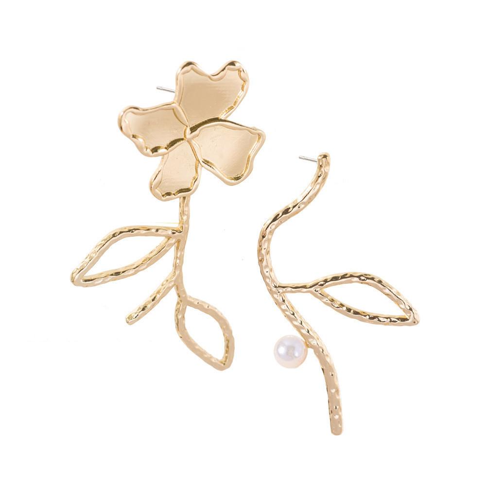 What sets these earrings apart is their masterful asymmetrical design, a popular trend in the world of fashion. One earring features a striking floral motif while the other is adorned with a lustrous pearl, creating a delightful contrast that is both eye-catching and chic. This asymmetry not only highlights your individual taste but also adds a layer of intrigue and sophistication to any outfit, making these earrings perfect for both casual wear and special occasions.