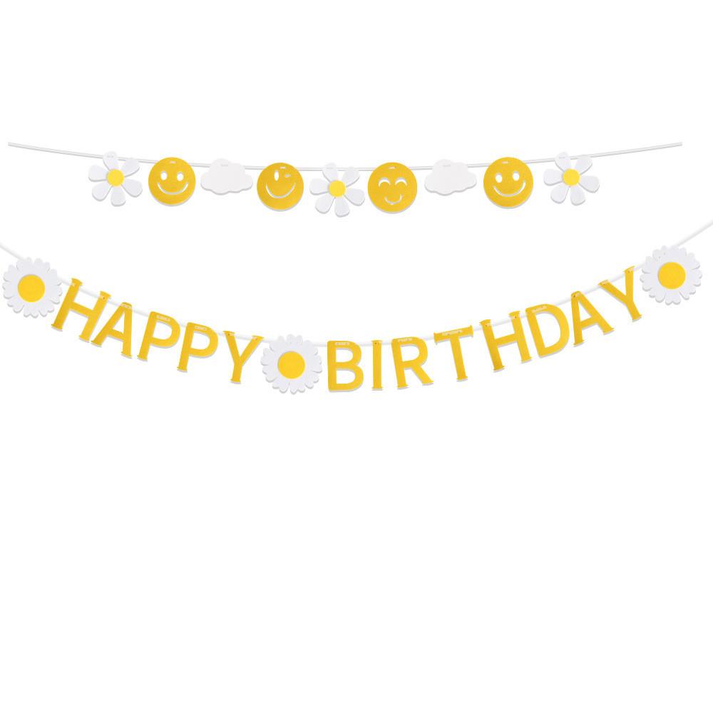 Очаровательные флажки «С Днем рождения» с ромашками для украшения и оформления детской вечеринки