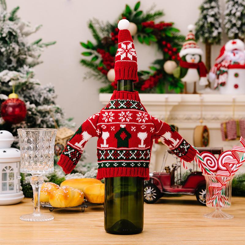 Уютный рождественский свитер Набор для винных бутылок Декоративный вязаный декор для атмосферы стола