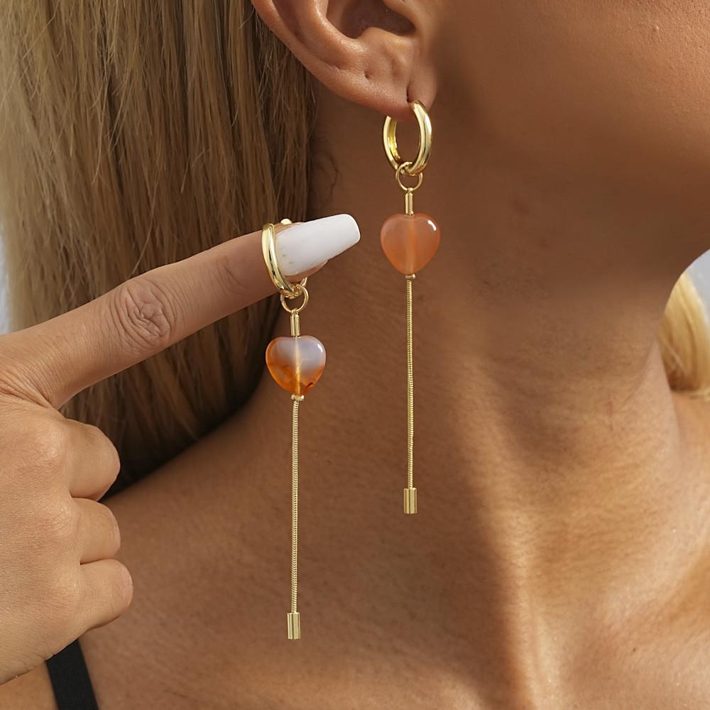 Представляем наше последнее дополнение к коллекции Осень 2023: Евро-американские трансграничные новые серьги. Эти серьги-сердечки из натурального камня креативного дизайна — воплощение минималистичного шика, гарантированно поднимут вашу игру в моде на новые высоты.. Эти серьги геометрической формы, тщательно изготовленные из высококачественной меди, подвергаются сложной гальванической обработке, обеспечивающей роскошную золотую отделку, излучающую вневременную элегантность.