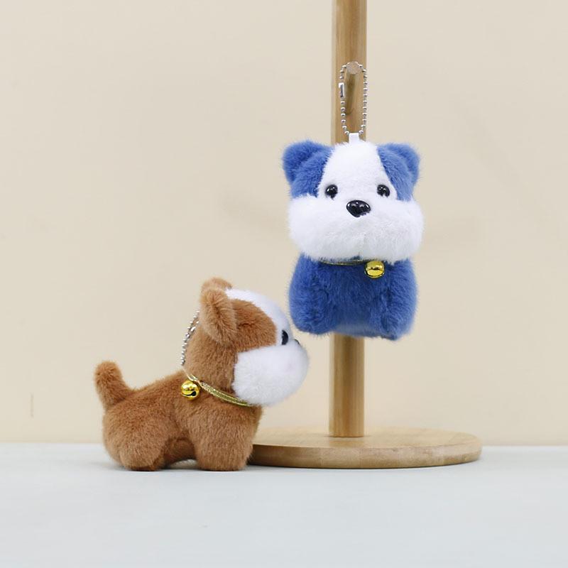 Delightful Blue And Brown Plush Dog Keychain Adorable Soft Toy For Gifts