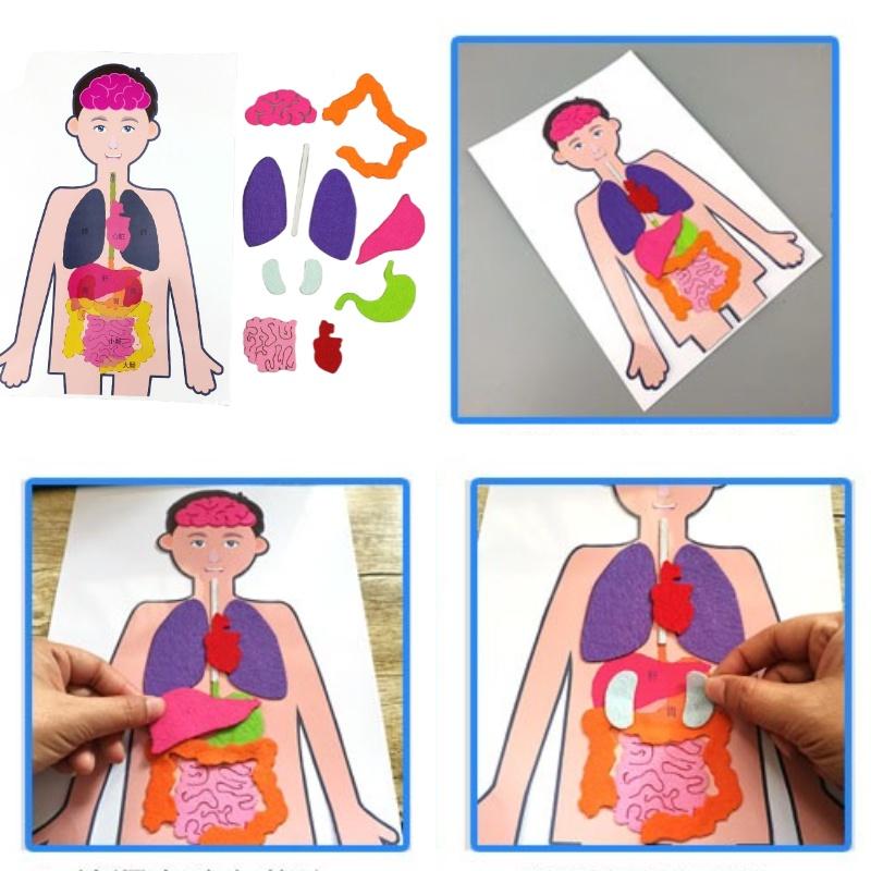 Набор для обучения распознаванию органов человека из нетканого материала для детей, набор материалов для научных экспериментов