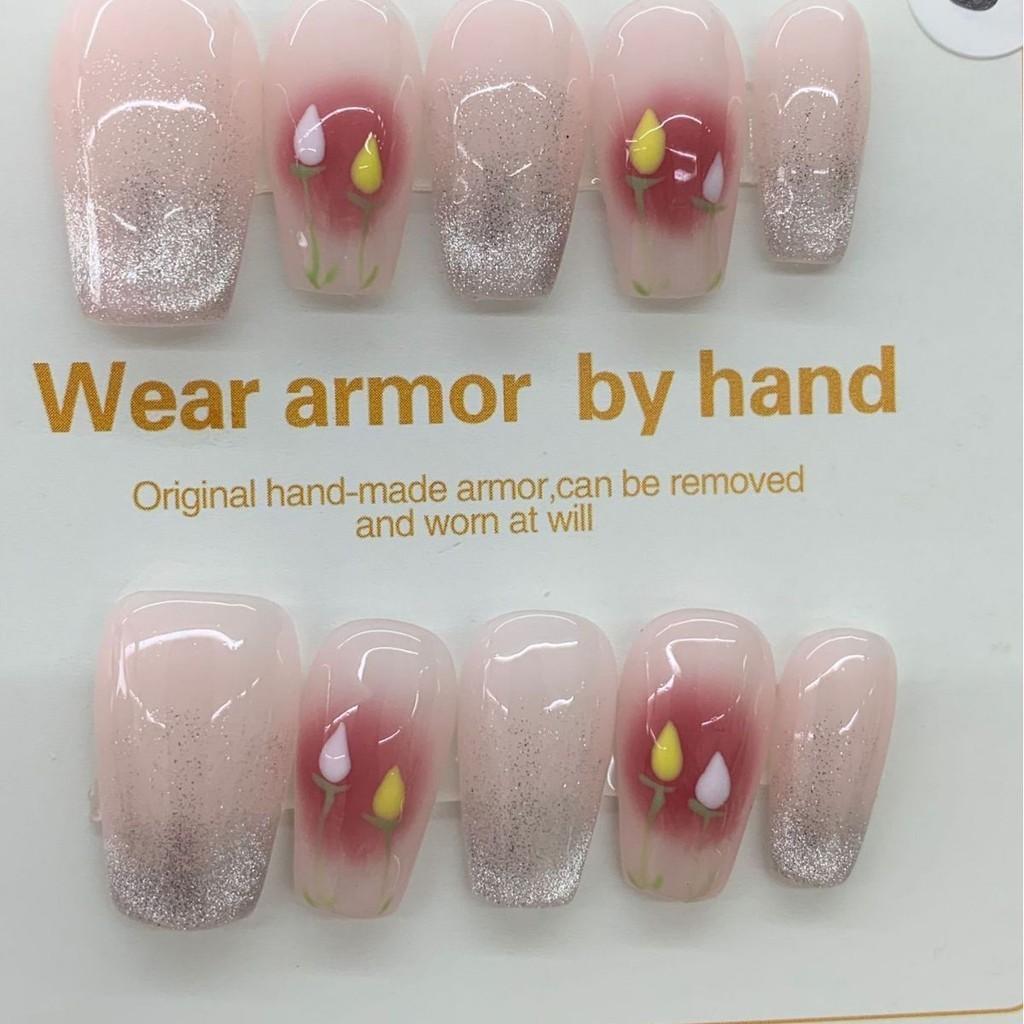 Hand-painted Floral Blush False Nails For Cute And Elegant Look