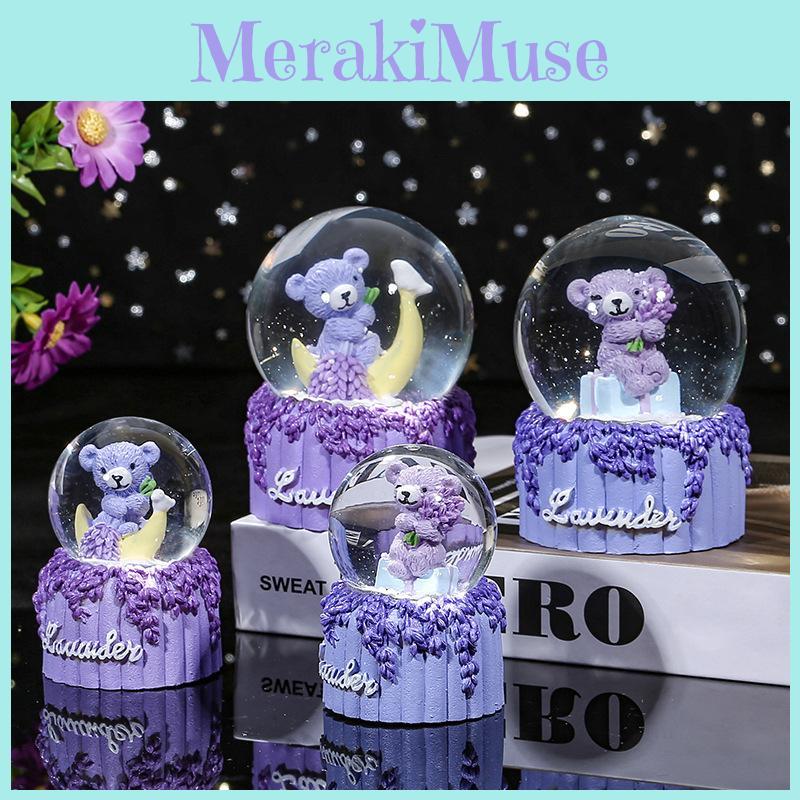 Милый фиолетовый лавандовый медведь, светящийся мини-кристальный шар, подарок на день рождения ребенка, настольное полимерное украшение
