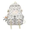 Academy Style Plaid Backpack For Women 2023 New Cross-border Middle School Student Bag Large Capacity Travel Double Shoulder Bag White