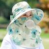 Pattern Flower Fan Women Breathable Sunshade Hat With Detachable Face Mask