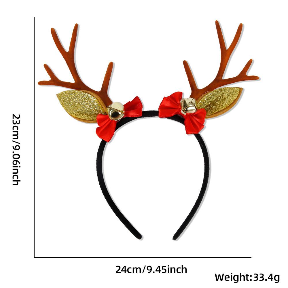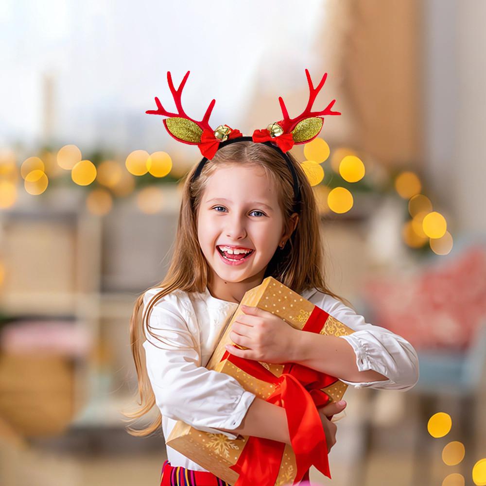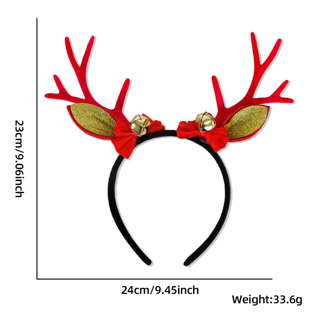 Праздничный дизайн: Ободок украшен очаровательными оленьими рогами, дополненными яркими красными бантами и бубенчиками, что делает его идеальным для праздничных торжеств и мероприятий на рождественскую тематику.