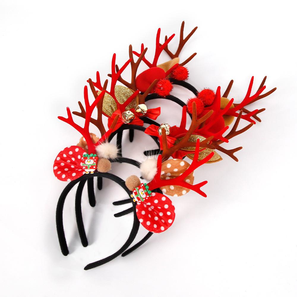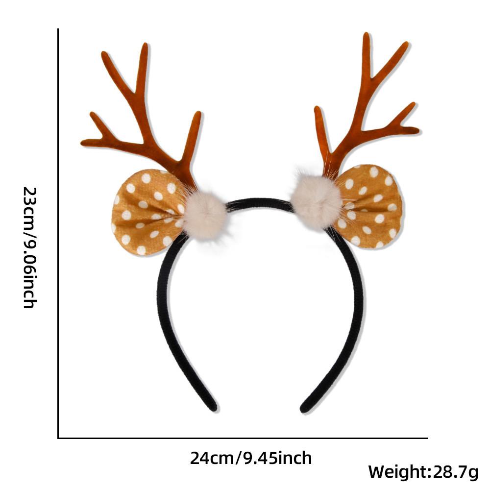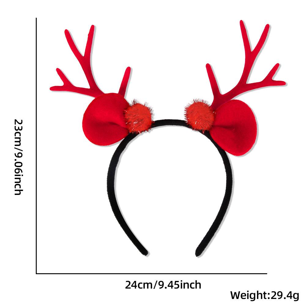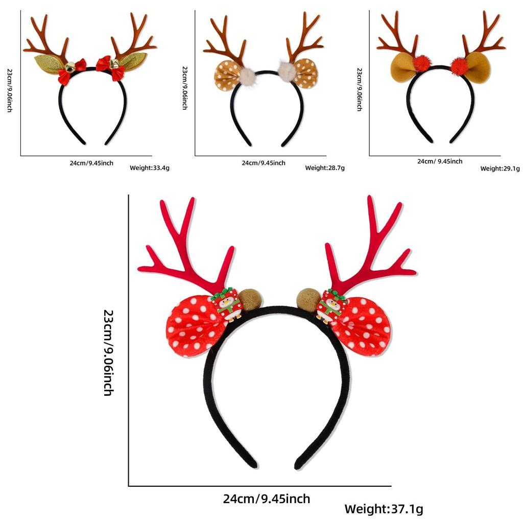 Праздничный дизайн: Ободок украшен очаровательными оленьими рогами, дополненными яркими красными бантами и бубенчиками, что делает его идеальным для праздничных торжеств и мероприятий на рождественскую тематику.