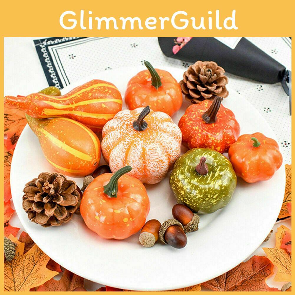 Изысканный набор искусственных тыкв из пенопласта на Хэллоуин с реалистичными реквизитами в виде сосновых шишек