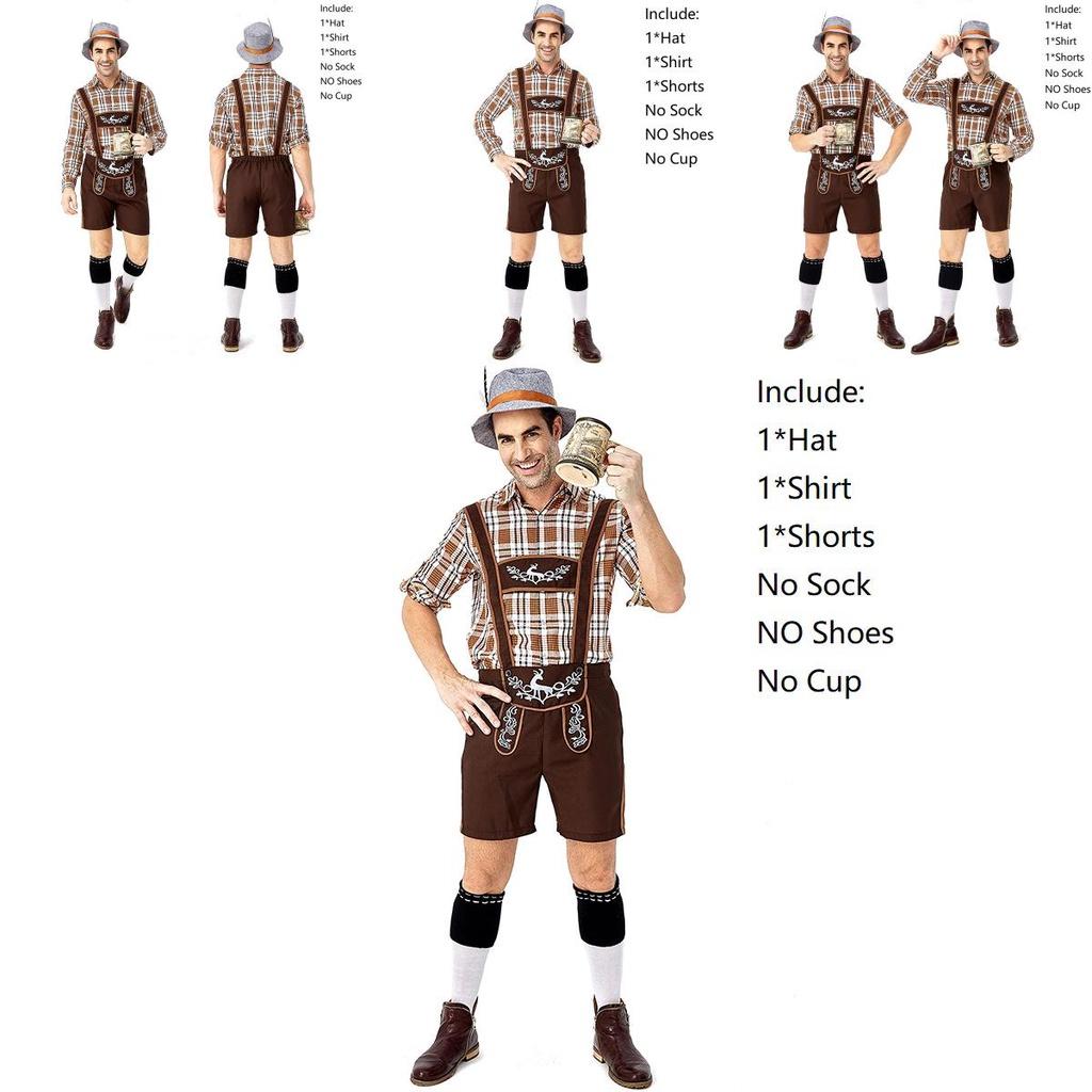 Стильная немецкая одежда для Октоберфеста для мужчин, костюмный набор с принтом олененка, хаки и клеткой