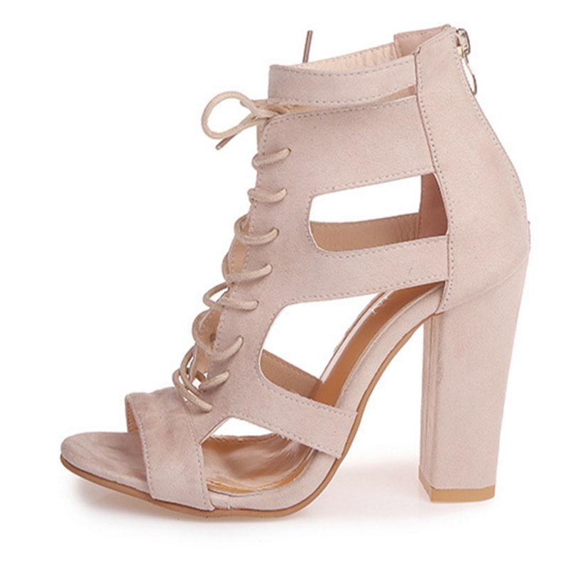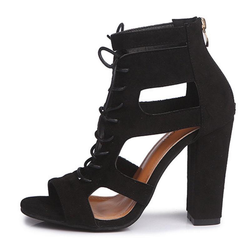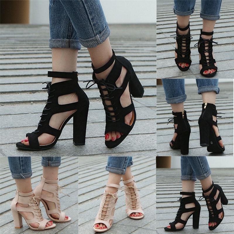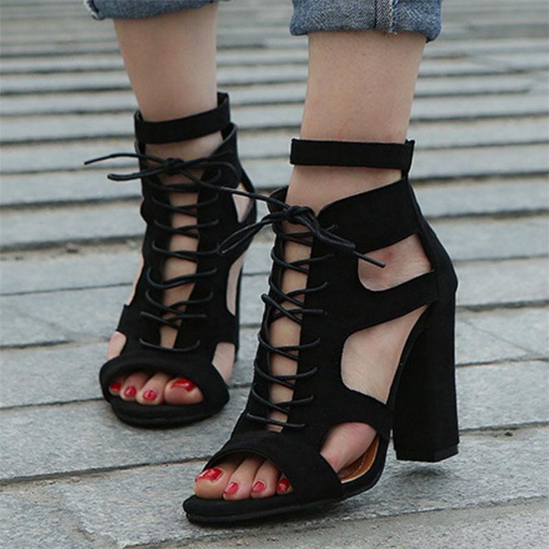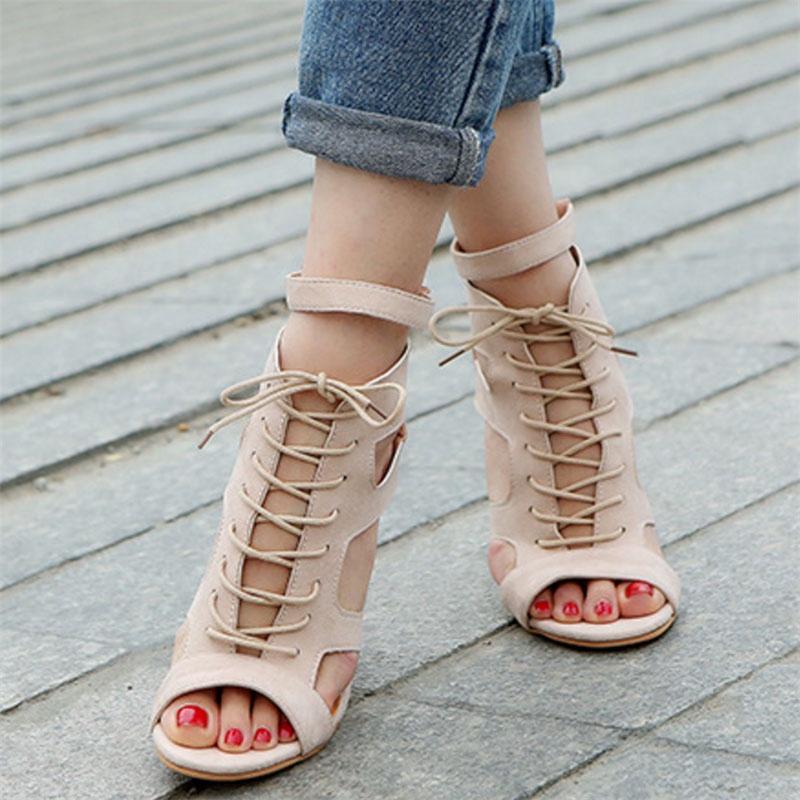 Женский открытый носок шнуровка вверх лодыжка сандалии сапоги высокий толстый каблук римские туфли