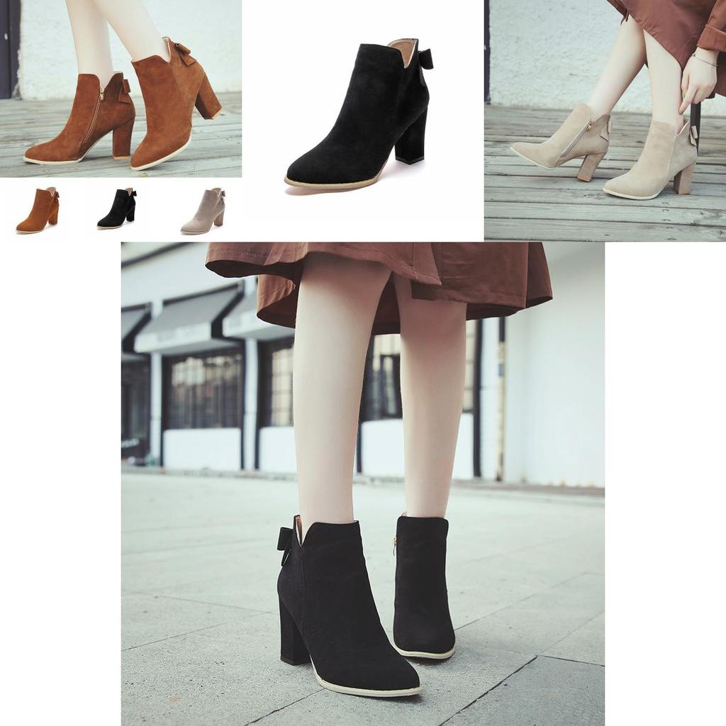 Женские Девушки Толстый Высокий Каблук Ботильоны Шнуровка Пикантный Носок кожа Зимняя Обувь
