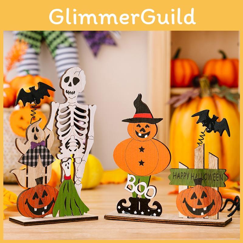 Creative Halloween Decorative Wooden Tabletop Ornament Featuring Spring Bat Pumpkin And Skull Design
