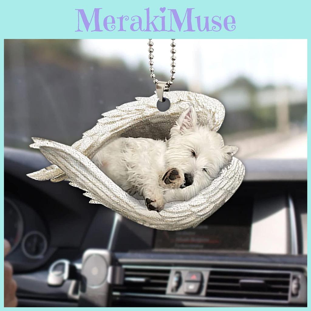 Cute Acrylic Car Mirror Pendant With Angel Wings Perfect For Dog Lovers Gifts