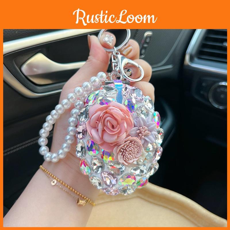 Crystal Glass Mirror Keychain Diy Finished Portable Makeup Mirror Bag Pendant Gift Wholesale Source Yiwu