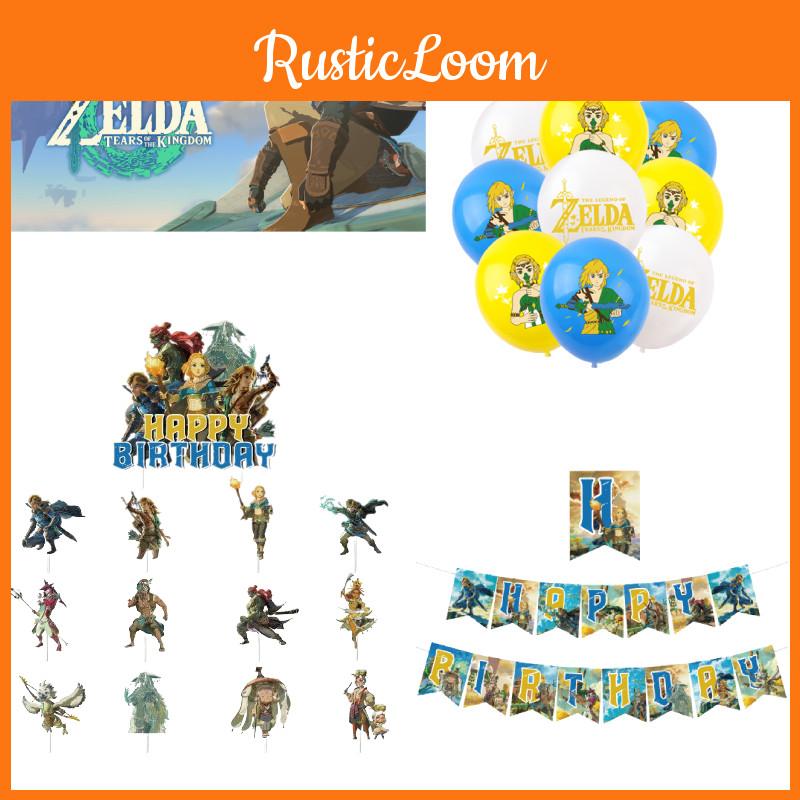 Celebrate your child's special day with the Zelda-themed birthday party decoration set! This party set includes a banner, cake topper, and 18 balloons, all featuring the iconic characters and symbols from the beloved Legend of Zelda game series.