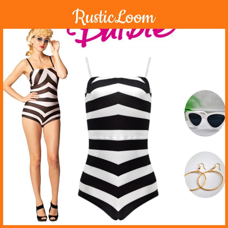 Приготовьтесь примерить на себя образ Барби с этим потрясающим черно-белым полосатым купальным костюмом.