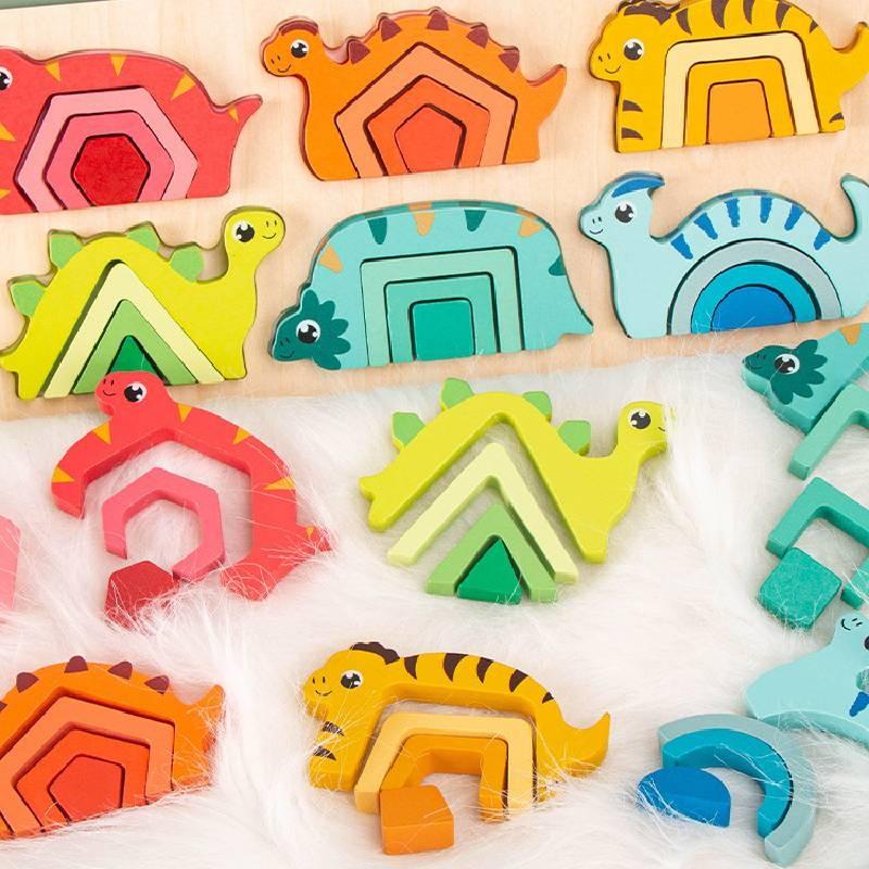 Деревянный пазл-геометрия с динозаврами для детей, развивающий координацию рук и глаз, обучающая игрушка