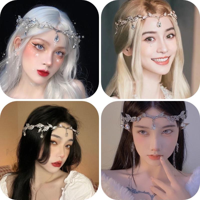 Корона Принцессы Эльфов Кристальное Украшение на Лоб Головной Убор для Свадебной Вечеринки