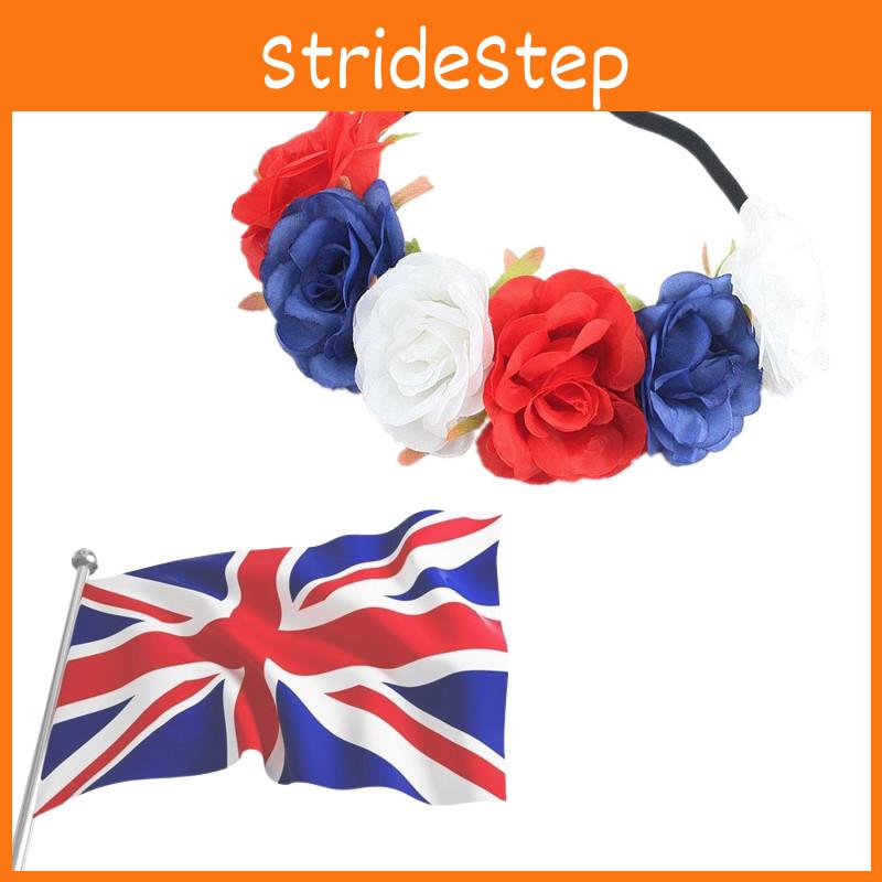 Красно-бело-синий венок из цветов на голову для торжеств, посвященных Юбилею Королевы