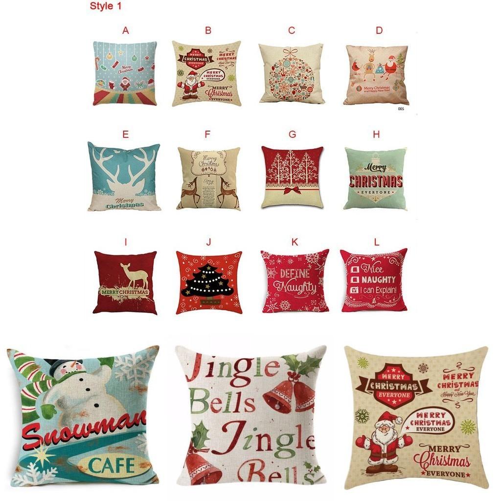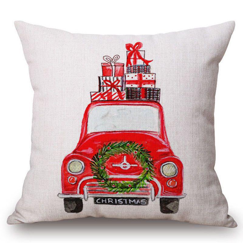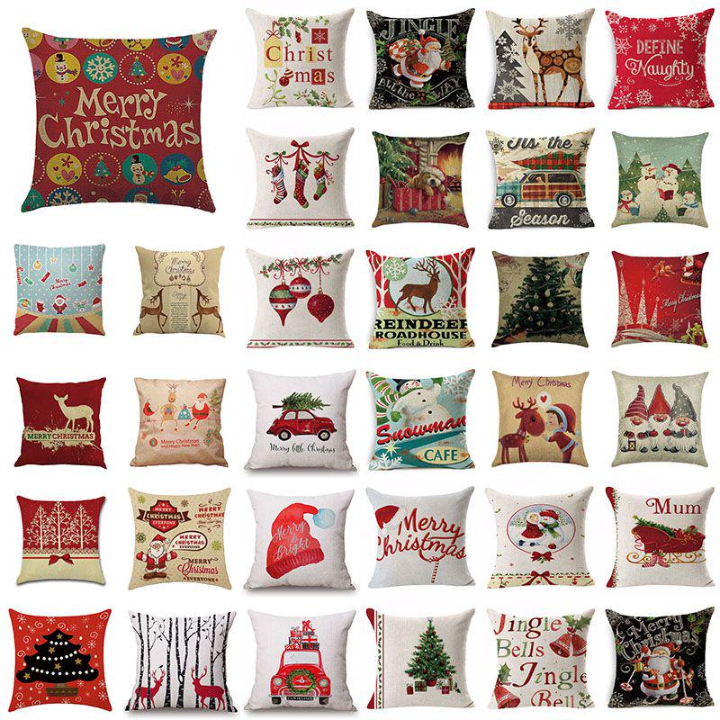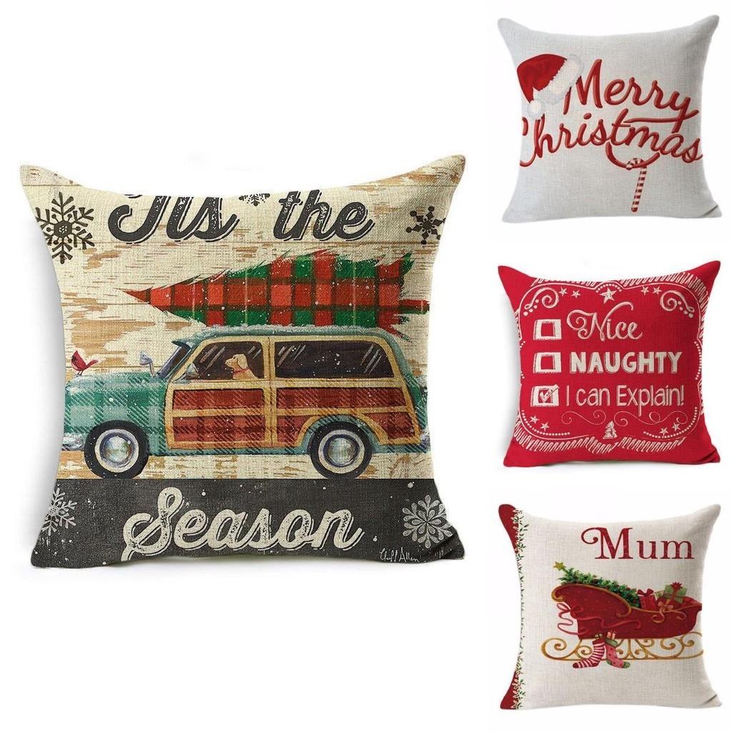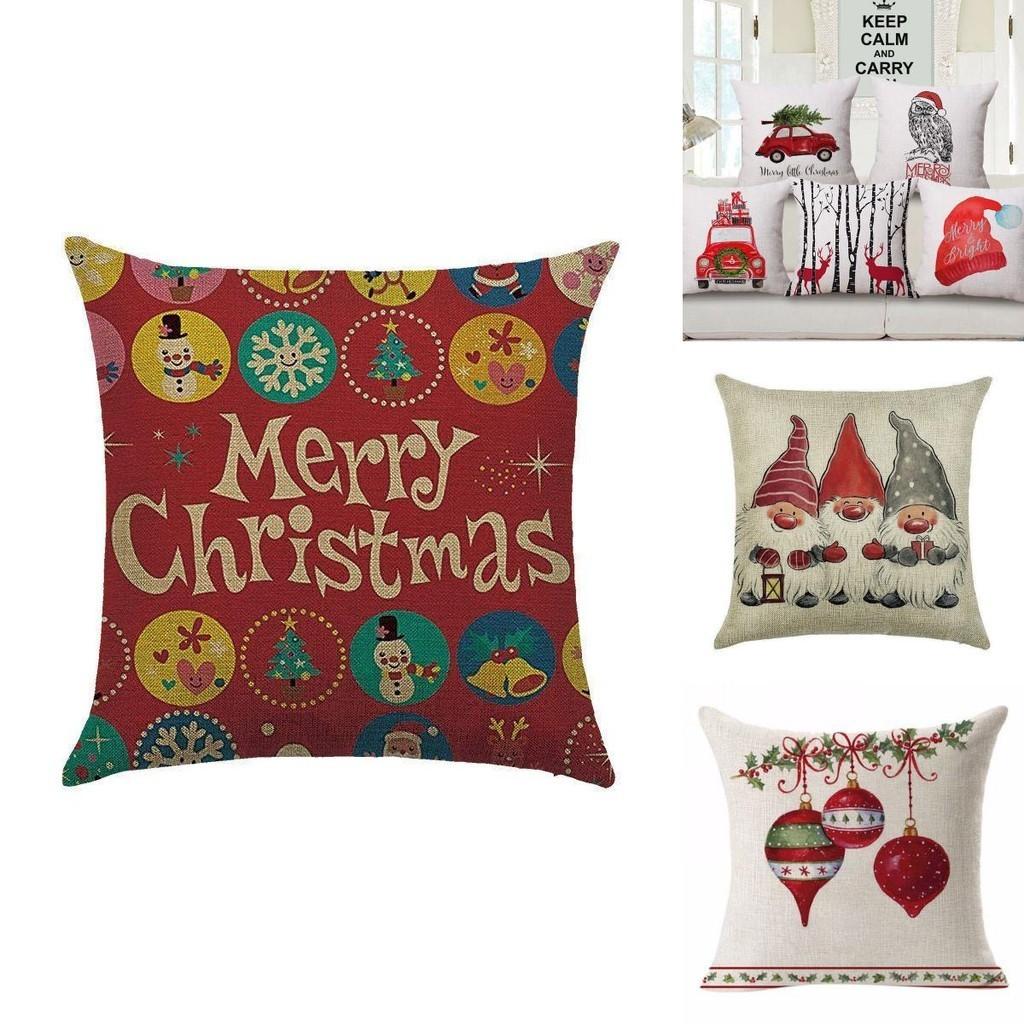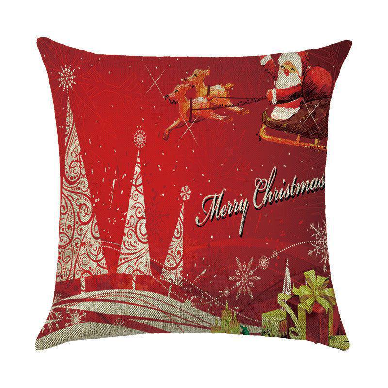Festive Christmas Xmas Linen Cushion Cover With Elegant Single Side Printing Design