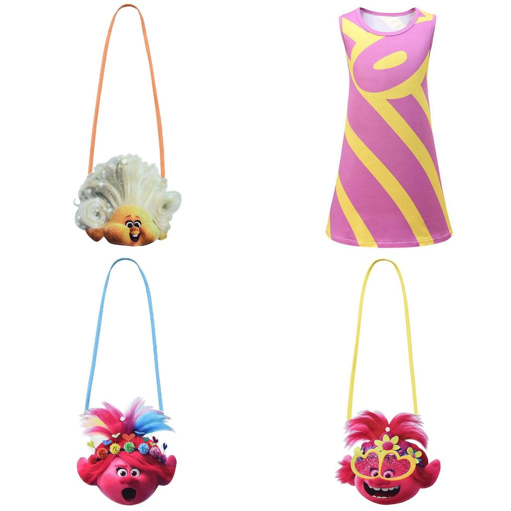 Trolls Poppy Cosplay Costume For Girls With Comfortable Soft Fabric And Vibrant Pink Color
