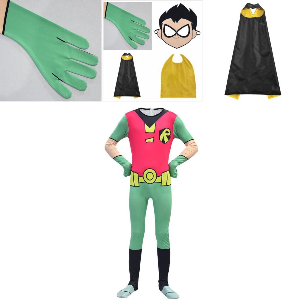 Костюм Teen Titan Robin, мальчики могут носить его на открытом воздухе или на детской площадке. Это сделает ваших детей более привлекательными. Детям это очень понравится.
