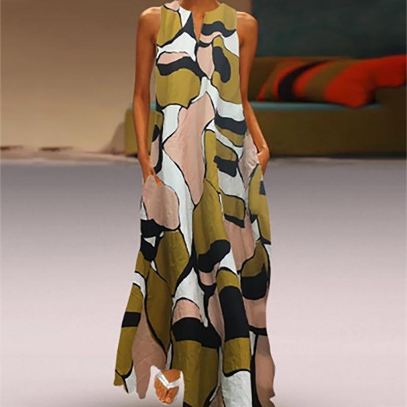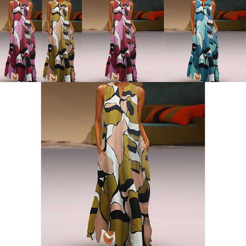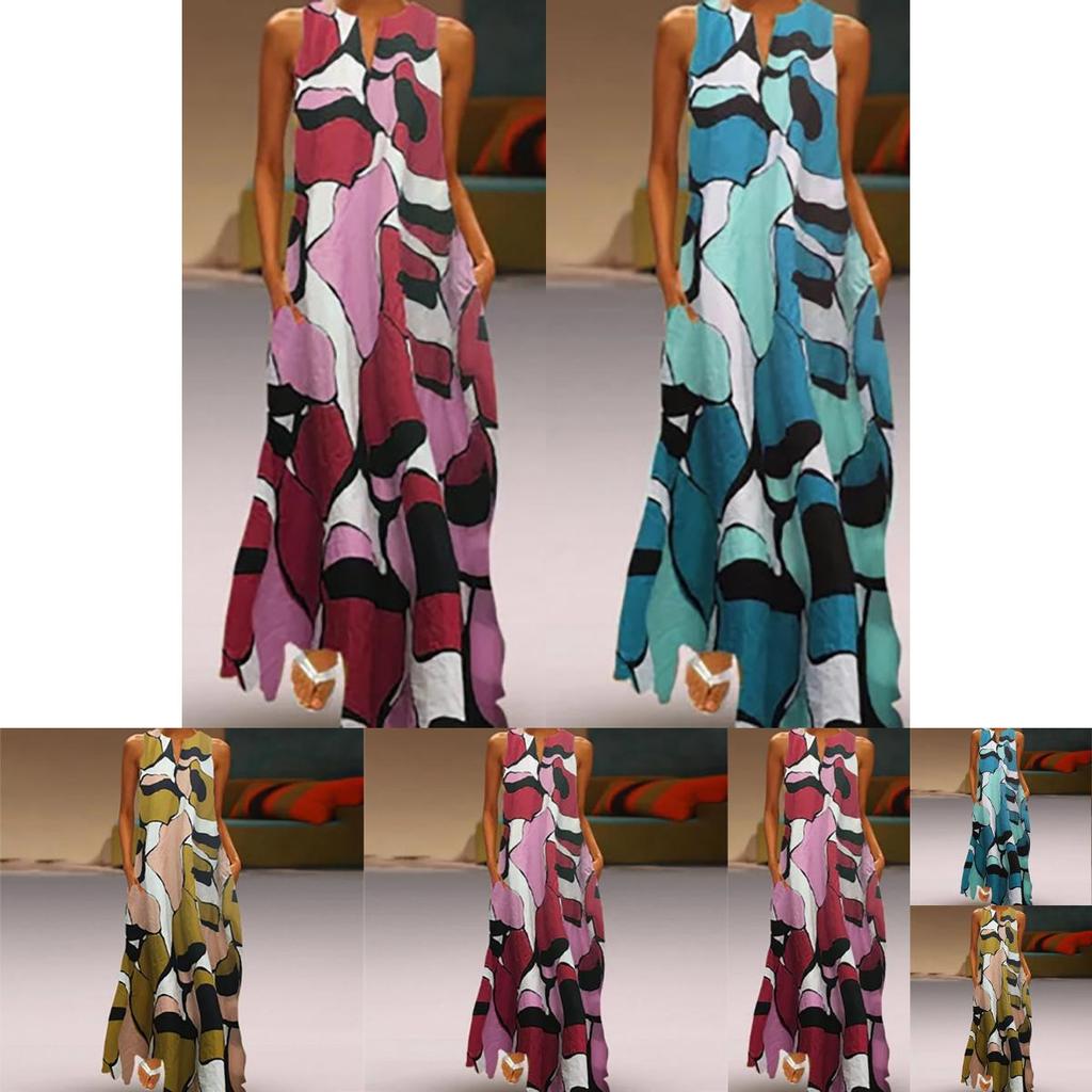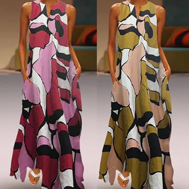 Элегантное женское длинное платье макси с цветочным принтом, разрезом по подолу, без рукавов, платье-рубашка, больших размеров, на любой случай