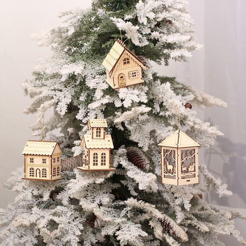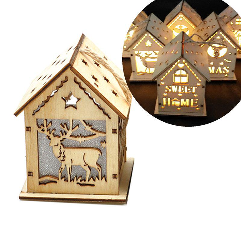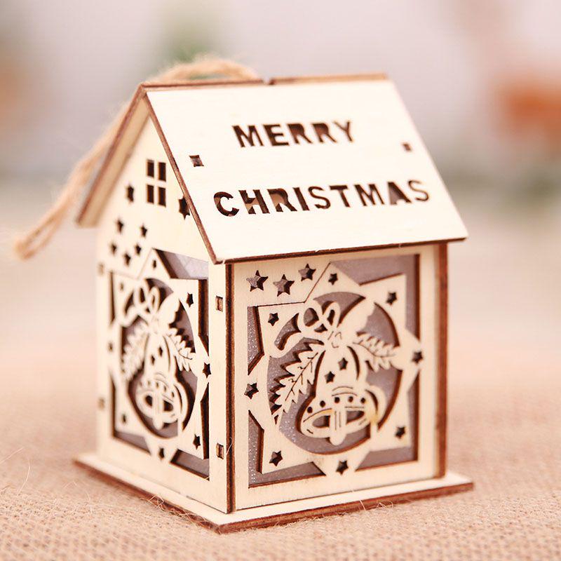 Светодиодный свет Деревянный домик Очаровательные подвесные украшения на рождественскую елку для праздничного декора