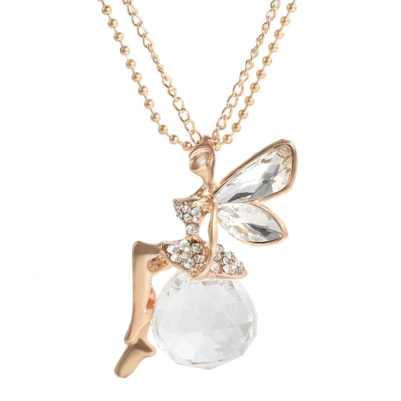 Завораживающая Мода Женский Кристальный Кулон Крыло Феи Ангела Длинная Цепочка Ожерелье Подарок