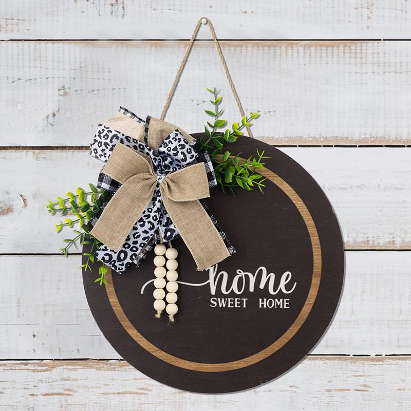 Elegant Spring Leopard Print Bow Welcome Door Sign With Wood Beads For Cottage Style