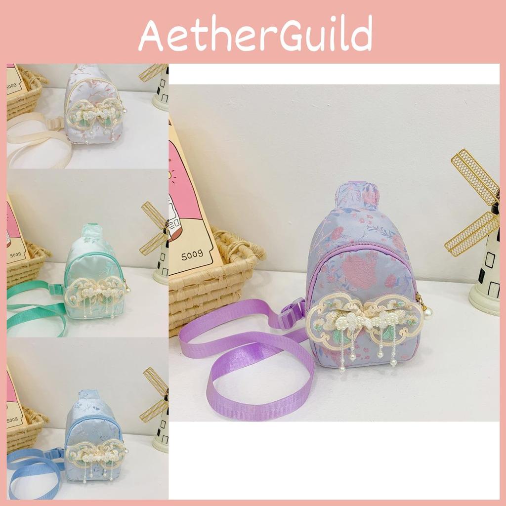 Charming Children's Handbag With Pearl Accents And Bowknot Geometric Patterns