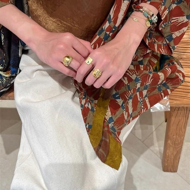 Stylish Retro Gold Geometric Zircon Inlaid Stacking Ring For Women 2024 Summer Collection