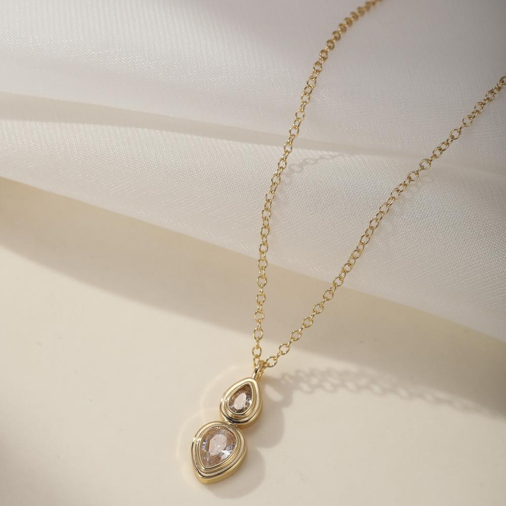 Contemporary Copper Pendant Necklace With Sparkling Zircon Stones Geometric Shapes For A Trendy Look