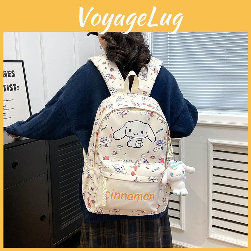 Cute Cartoon Style Casual Backpack For Students In Beige Pink Black And Blue Colors