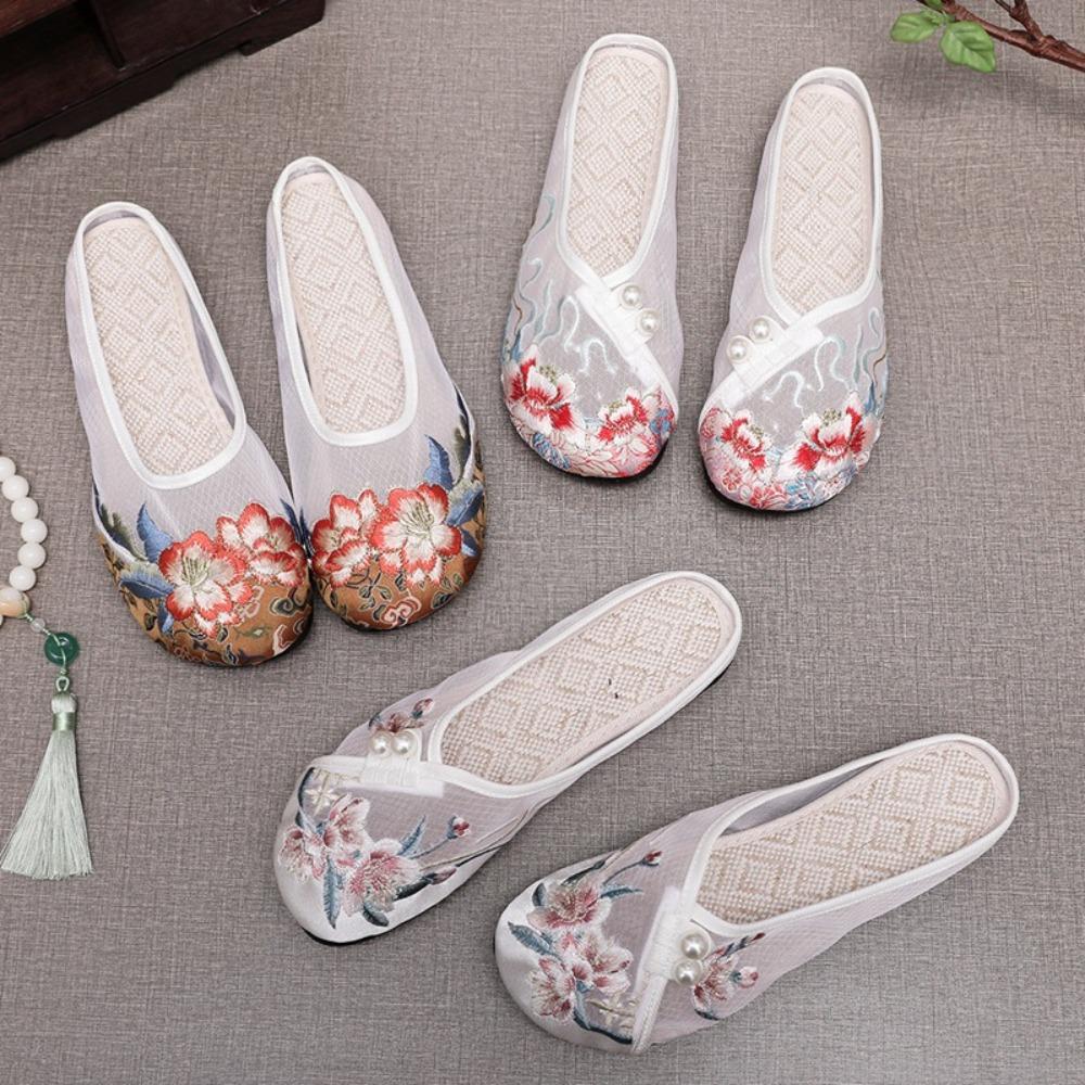 Жемчужные тапочки Ханфу Сетчатые вышитые туфли Этнический стиль Тапочки Баотоу Аксессуары для Ханфу — купить товар онлайн с бесплатной доставкой до всему миру!
