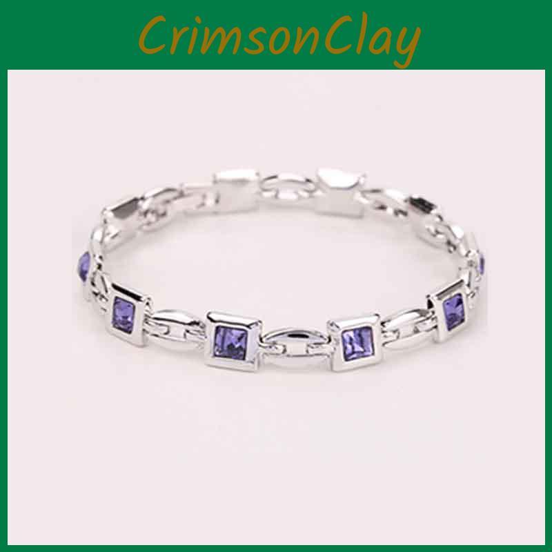 Fashion Jewelry Silver Plated Princess Cut Girl Elegant Crystal Bracelet Charm With Sparkling Geometric Design