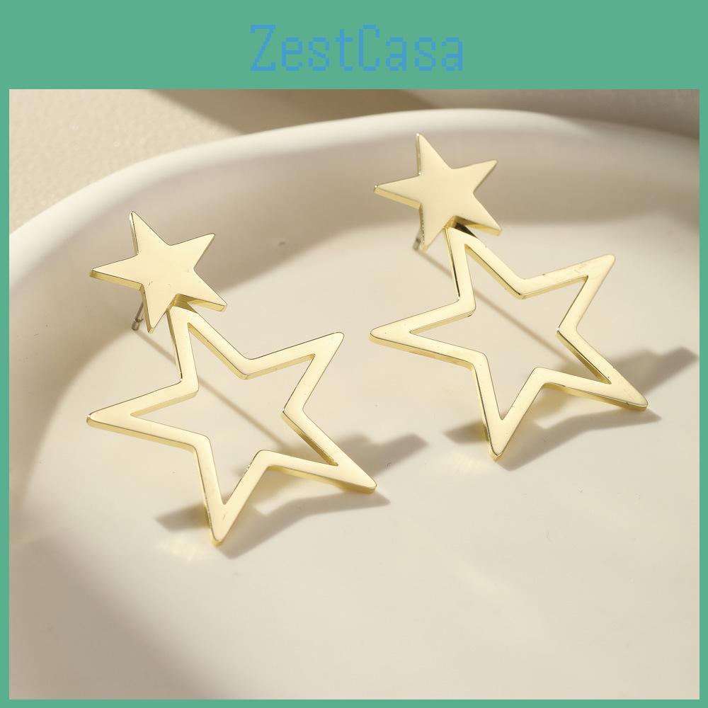 Выдающейся особенностью этих стильных серег является их уникальный дизайн с двойной пентаграммой.. Две переплетающиеся формы звезды создают привлекательный силуэт, который одновременно современный и причудливый.. Точность процесса гальванического покрытия гарантирует, что металлическая отделка будет блестящей и долговечной, устойчивой к потускнению и сохраняющей свою красоту с течением времени.. Полый дизайн добавляет воздушной легкости, делая эти серьги удобными для ношения в течение всего дня без ущерба для визуального эффекта.