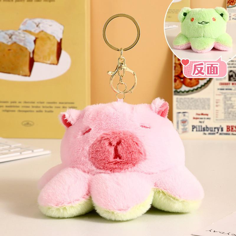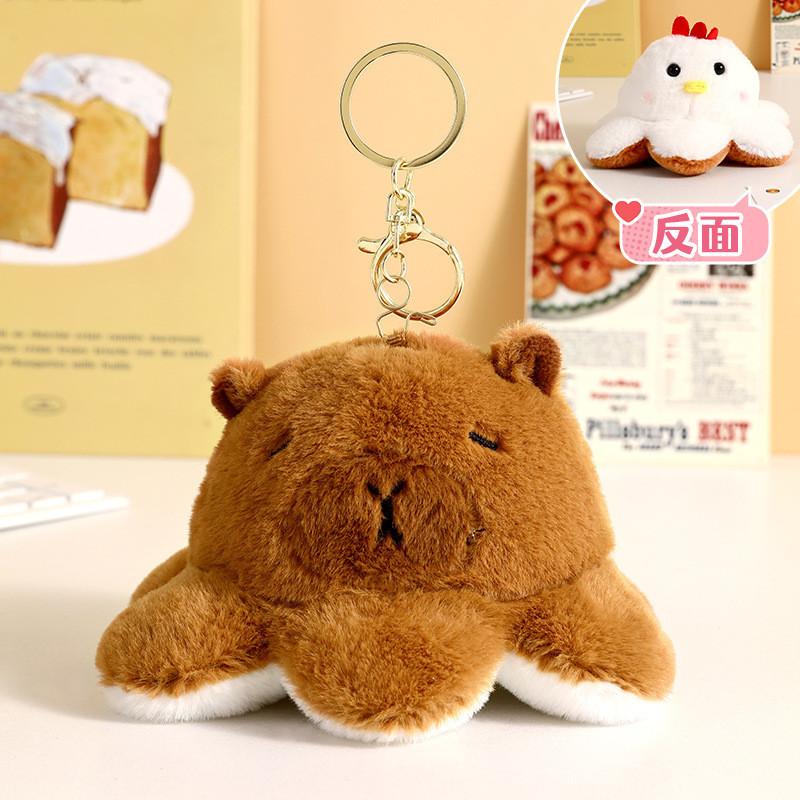 Очаровательный плюшевый брелок-капибара, милый мультяшный аксессуар для ключей с перекидывающимся лицом