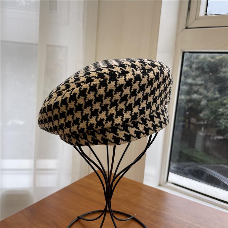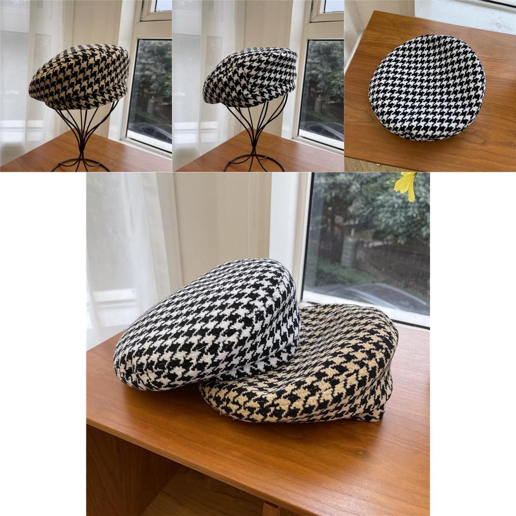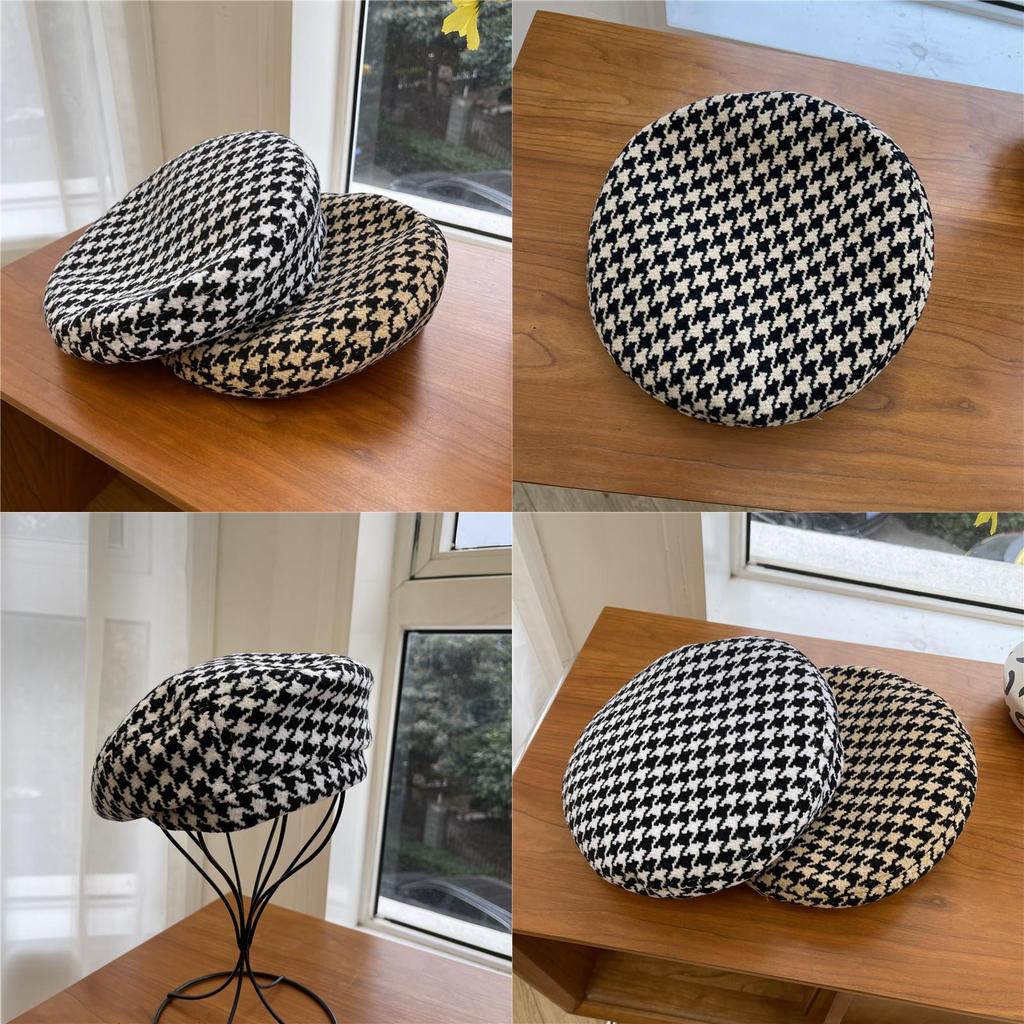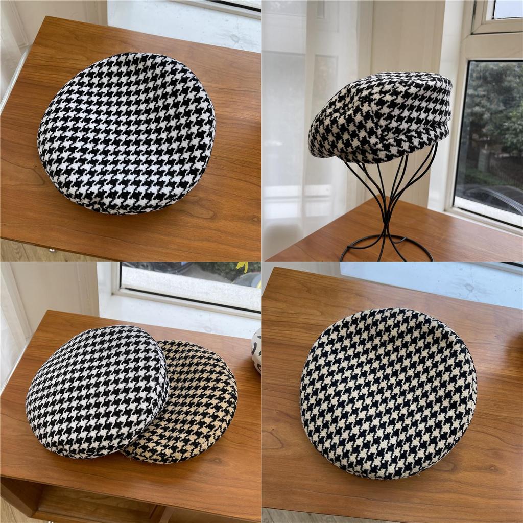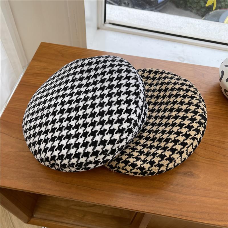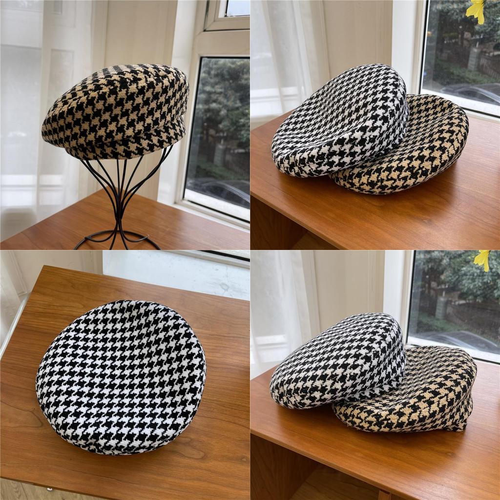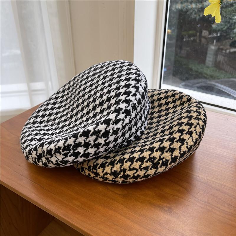 Шикарный и модный женский берет, японский минималистичный дизайн, повседневный клетчатый узор, черно-белые цвета