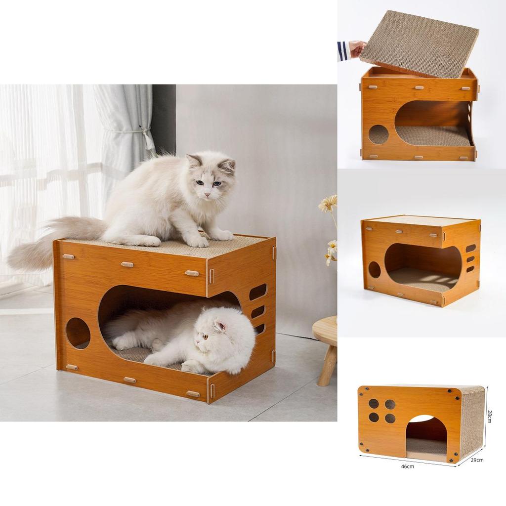 Изготовленная из качественной древесины, эта кошачья лежанка не только прочная, но и экологически чистая, обеспечивая безопасное и удобное пространство для ваших любимых питомцев.. Уникальный дизайн из гофрированной бумаги добавляет кровати элемент веселья, делая ее забавным дополнением к вашему домашнему декору.