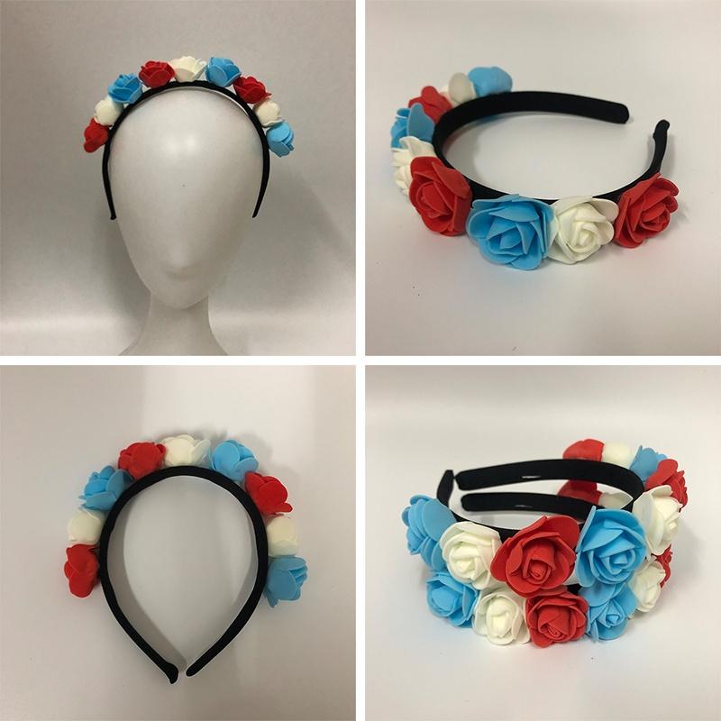 На венке 9 реалистичных цветов, каждый около 3,5 см, и тот же цветовой дизайн, что и у Юнион Джека.. Эластичное оголовье подходит для большинства женских окружностей головы, пожалуйста, будьте уверены, чтобы купить!