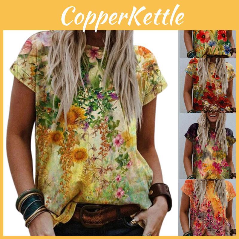 Women's Floral Print Short Sleeve Tops Featuring Soft Material For Ultimate Comfort — купить товар онлайн с бесплатной доставкой по всему миру!