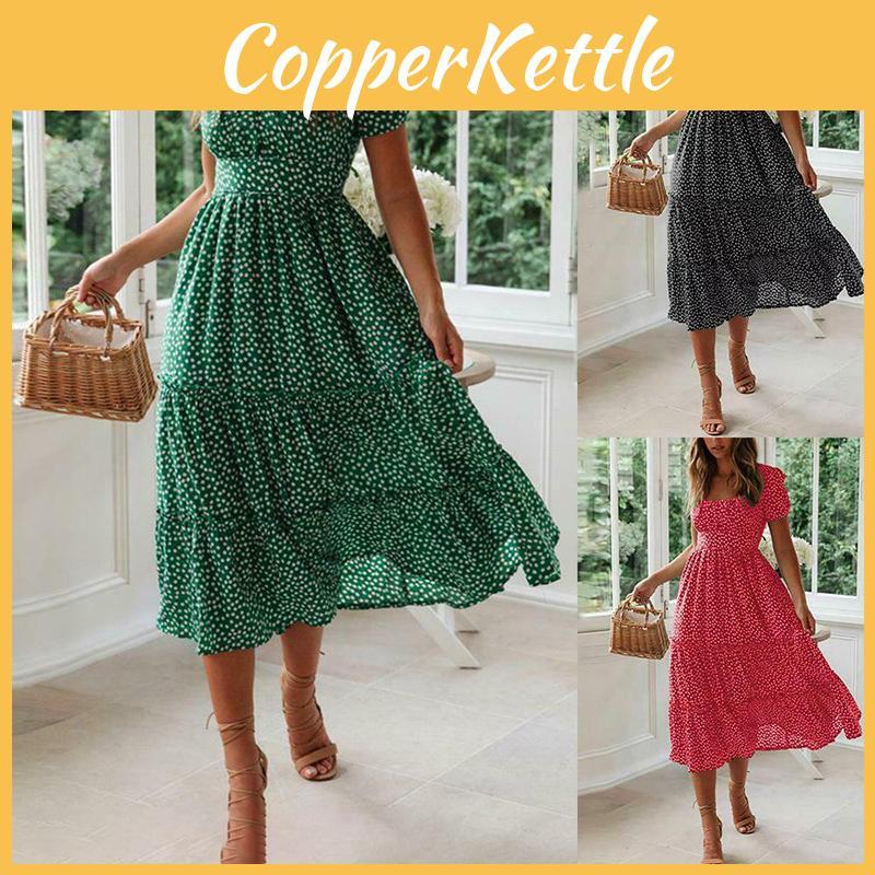 Элегантное женское платье макси в горошек в стиле бохо с оборками и квадратным вырезом для пляжа