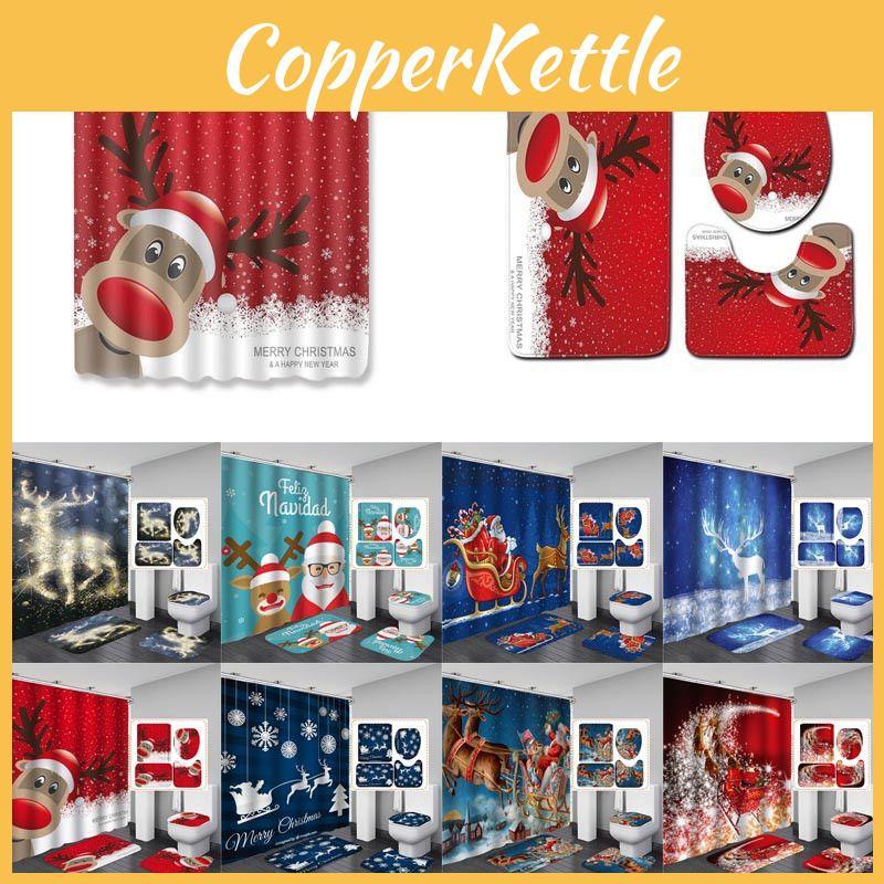 Премиальная Рождественская Занавеска для Душа с Ковриками для Крышки Сиденья Унитаза и Ковриком, Набор для Стильной Праздничной Ванной Комнаты