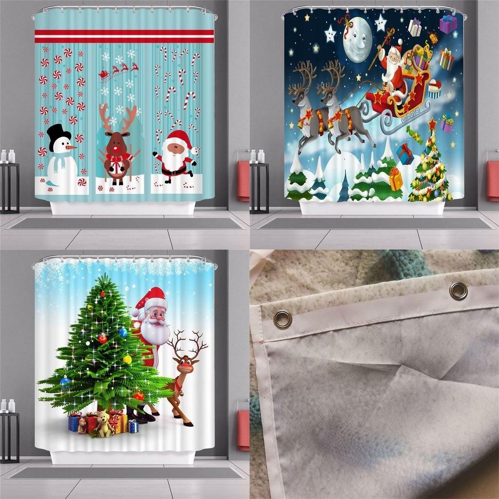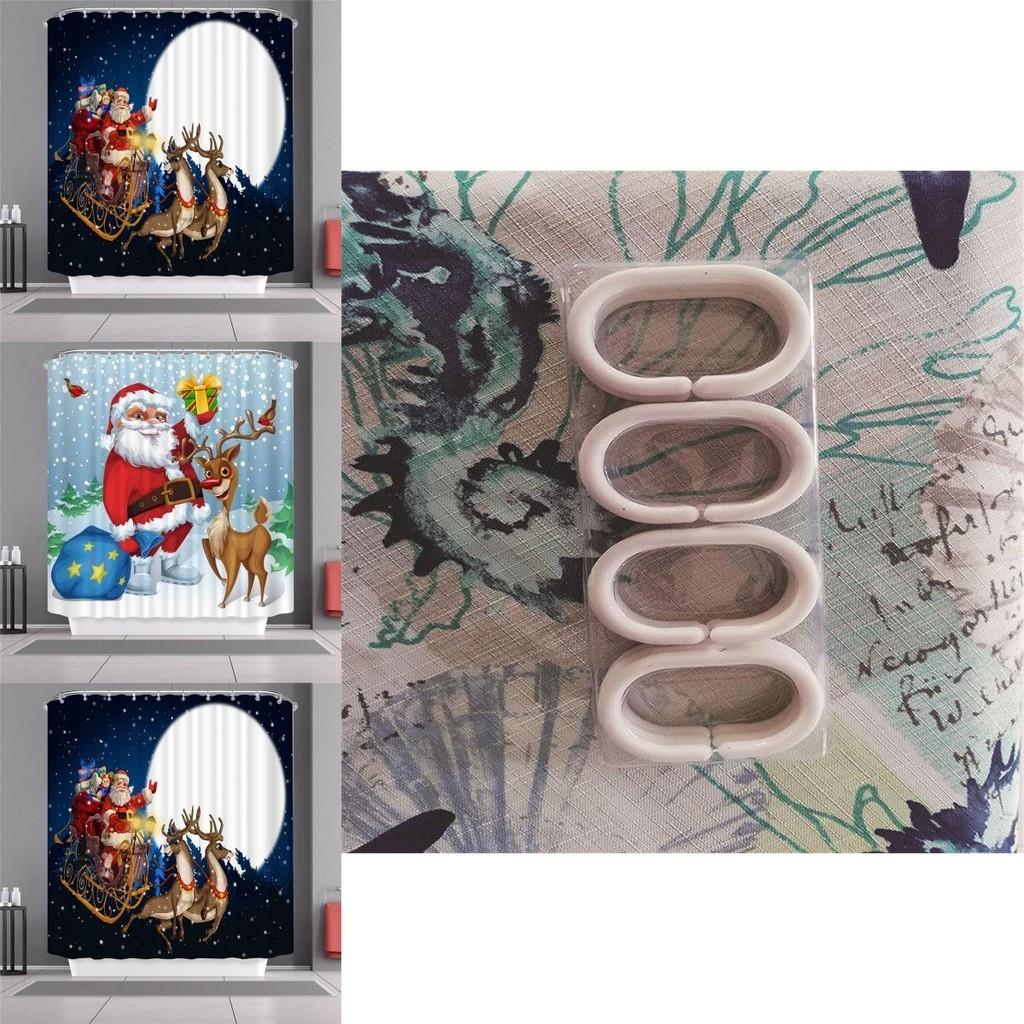 Дед Мороз Рождественская Занавеска для Душа с Крючками Водонепроницаемая и Прочная