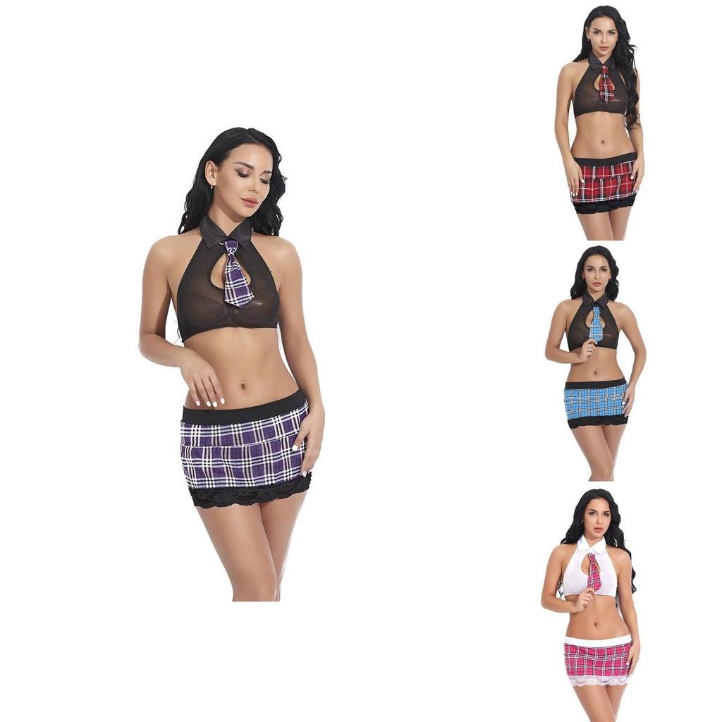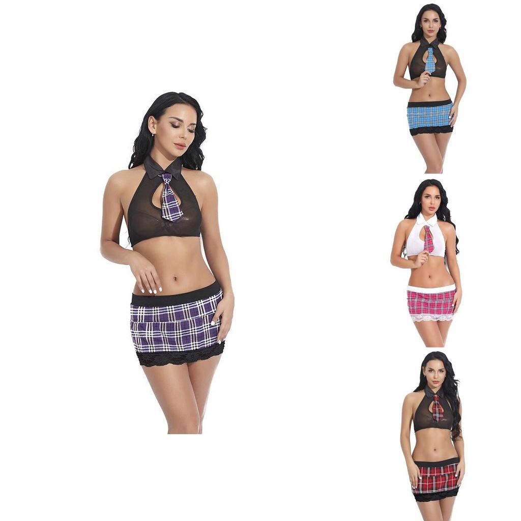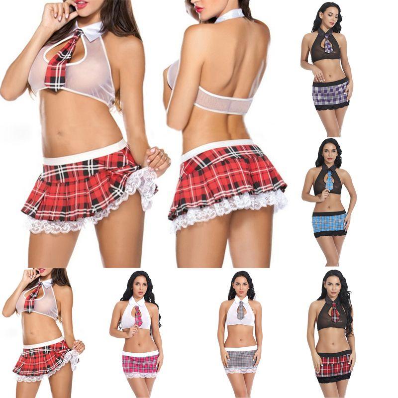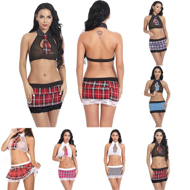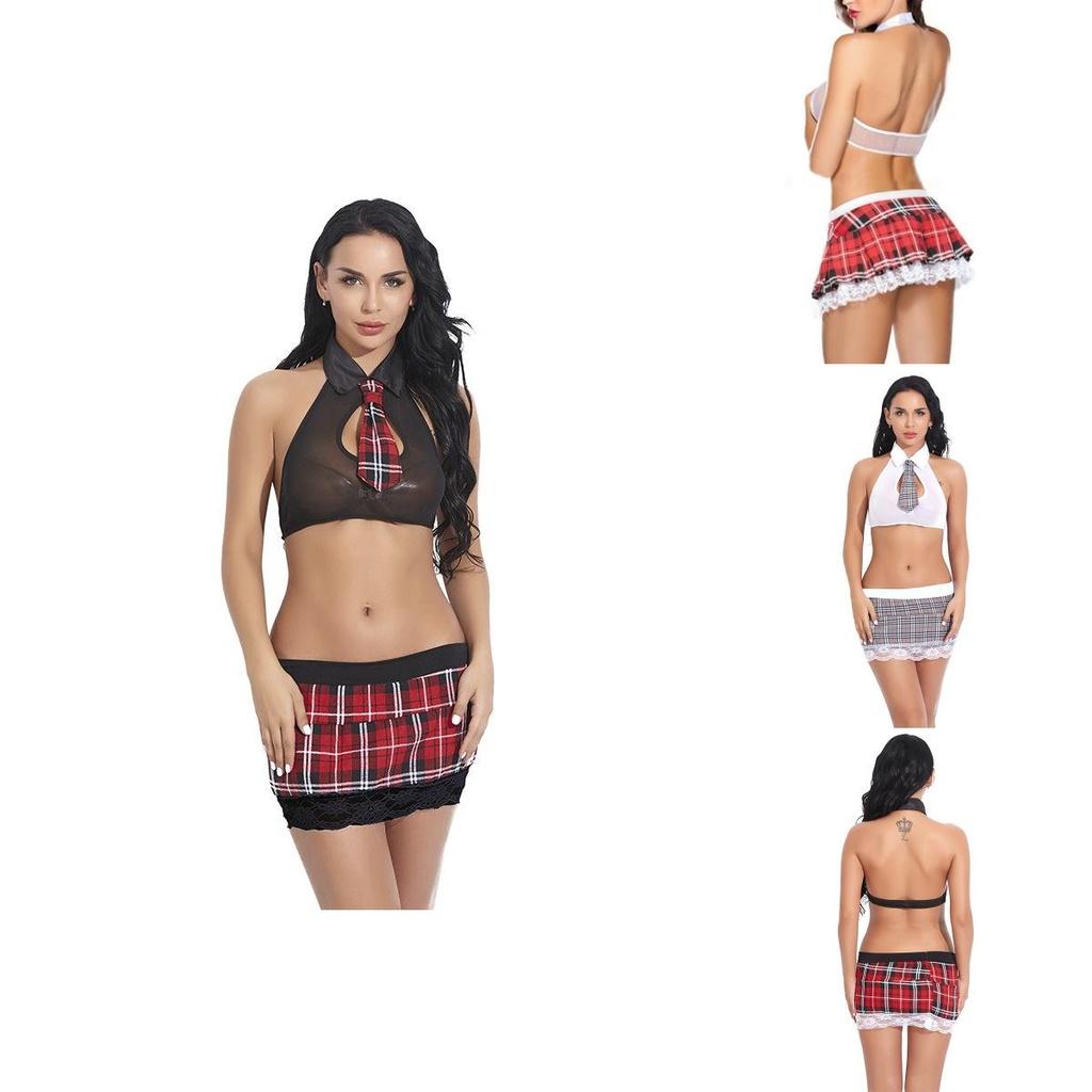 Women Sexy Cosplay Lingerie Student Uniform Set Ladies Crop Top Shirt Costume